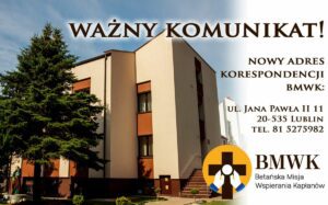 ZMIANA ADRESU BMWK 24 lipca 2020 Biuro BMWK będzie mieściło się przez najbliższy czas w Lublinie. Nowy adres korespondencji:ul. Jana Pawła II 11; 20-535 Lublintel. 81 Czytaj więcej...