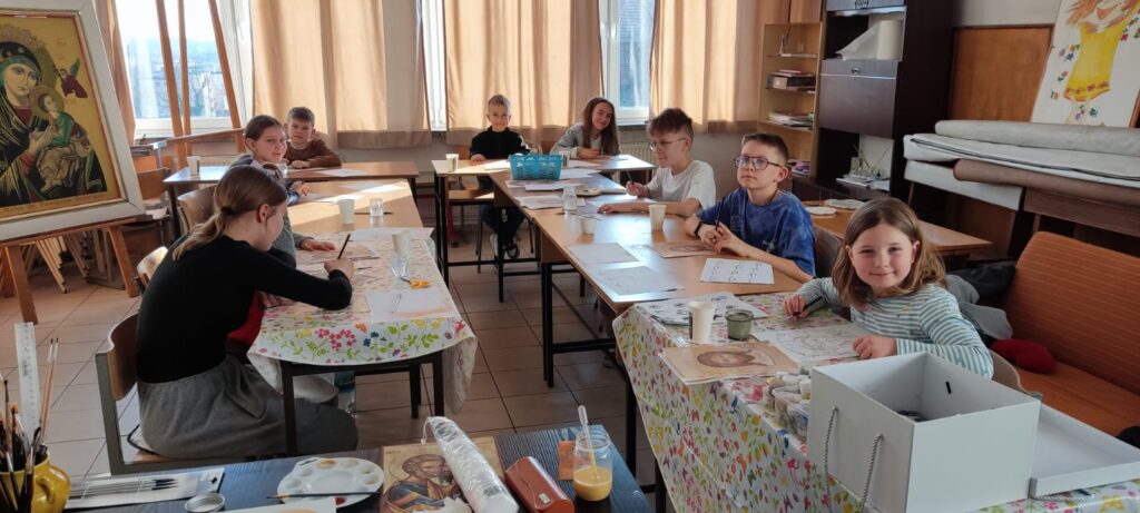 Dzieci z parafii św. Trójcy w Gubinie spotykają się na warsztatach pt.” „Tajemnica Ikony”, które prowadzi s. Klara. Poznają podstawowe zasady jak powstaje ikona, wykonują ćwiczenia, poznają kolory, tworzą szkice, modlą się i uczą się pracy w ciszy, by odkrywać Jezusa. Mandylion to ikona, którą piszą z wielką radością, a jednocześnie z niezwykłą cierpliwością.