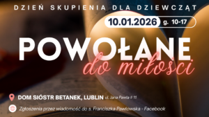 Przed nami pierwszy w Nowym Roku dzień skupienia dla dziewcząt organizowany przez Siostry Betanki w Lublinie. Zapraszamy dziewczęta uczące się w